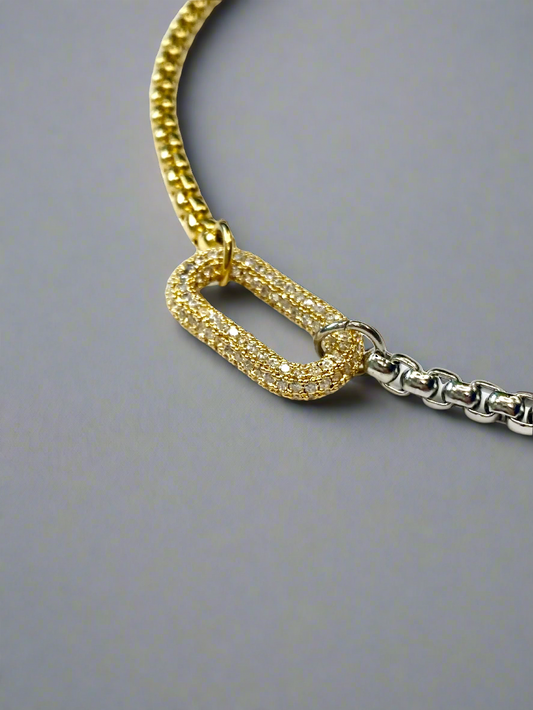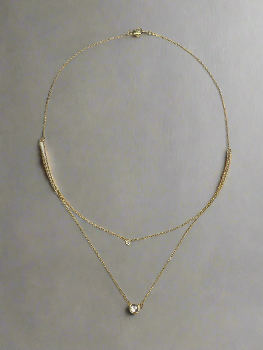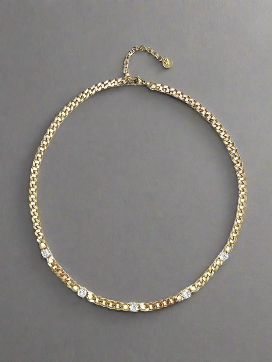 Grid Spectrum CZ Collar Chain Layering Necklace